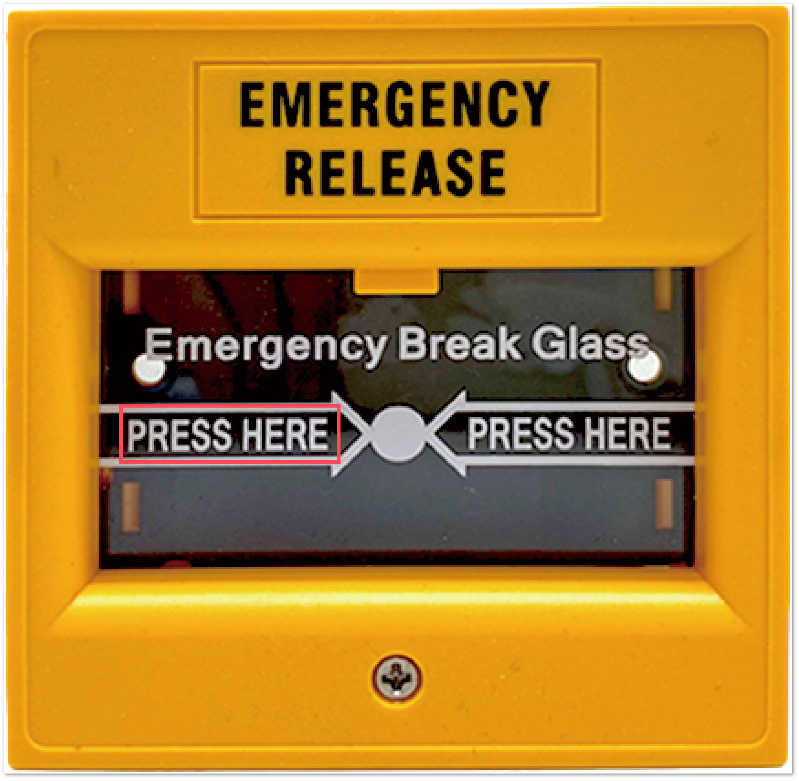BGD1 Emergency Door Release is designed to work with the normally energized (fail-safe) electric door locks; which comes with the contact from N/C to N/O when the glass is broken. The main function is to override the electrical locking/release devices in case of emergency. An auxiliary key is supplied for replacing the broken glass.