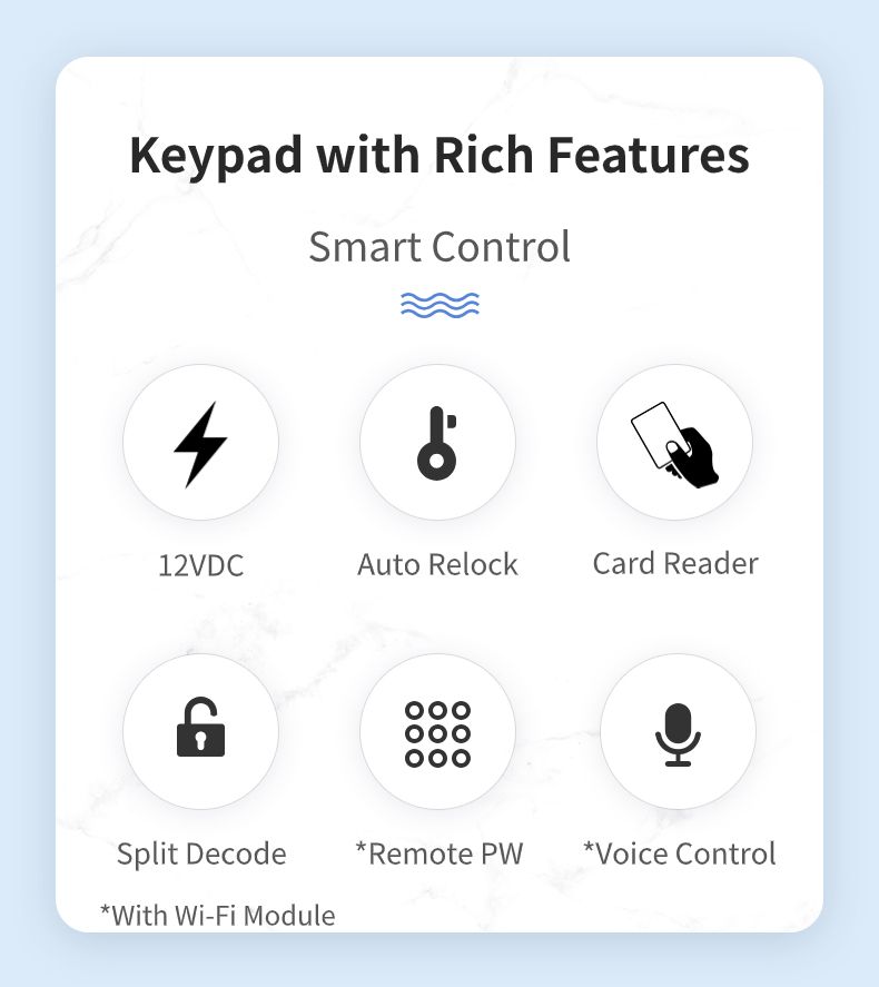 DK-2865 is a simple access control keypad. The keypad has two different modes which Single User Mode and Multi-User Mode. Single User Mode only contains 1 user code. Multi-User Mode contains up to 100 user code.